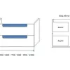 - Напольная тумба устанавливается на пол на ножки (высота регулируется +25 мм). Боковые стенки тумбы должны вплотную прилегать к стене! Для надежности конструкции тумбу рекомендуем закрепить вплотную к стене насквозь подходящими саморезами через закладную деталь (расположенную на задней части тумбы) примыкающую к стене.