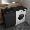 Монтаж умывальника со столешницей из литьевого мрамора над стиральной машиной.