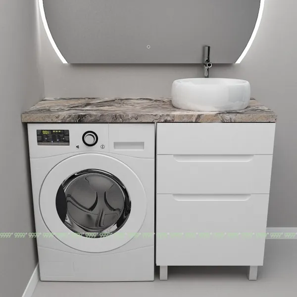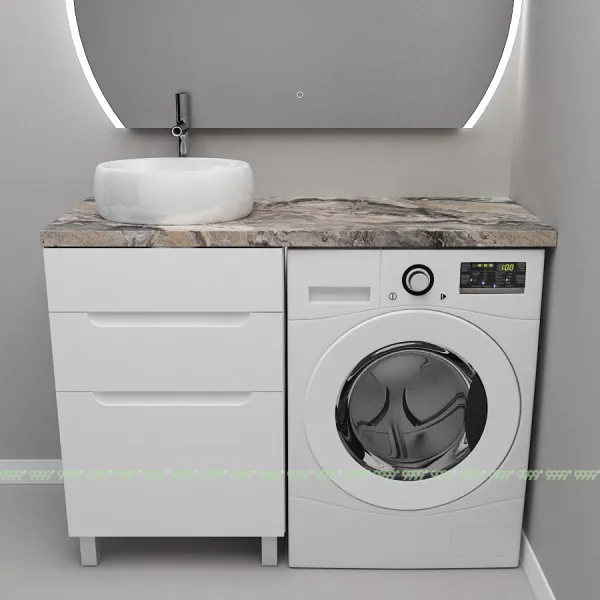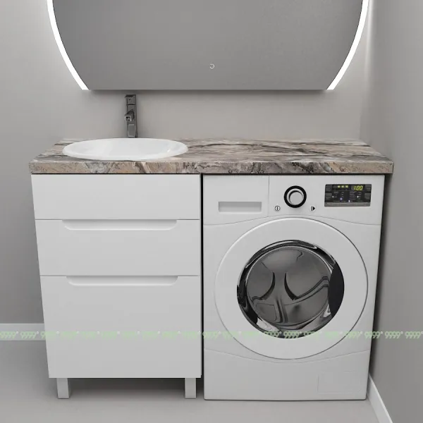 Монтаж умывальника со столешницей из литьевого мрамора над стиральной машиной.