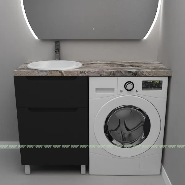 Монтаж умывальника со столешницей из литьевого мрамора над стиральной машиной.