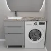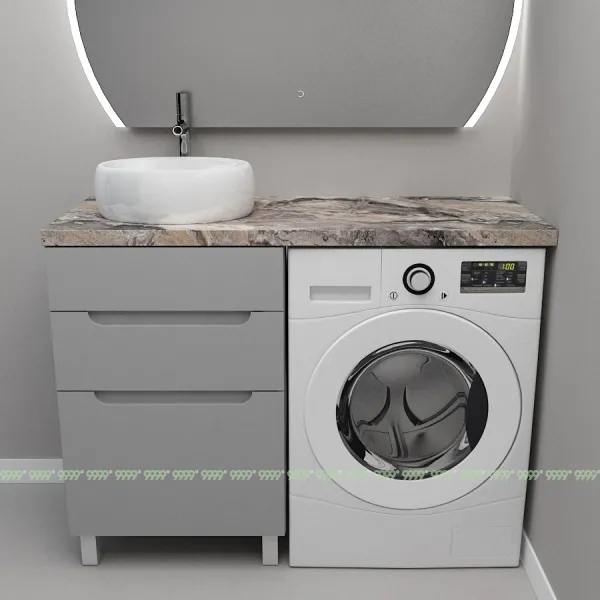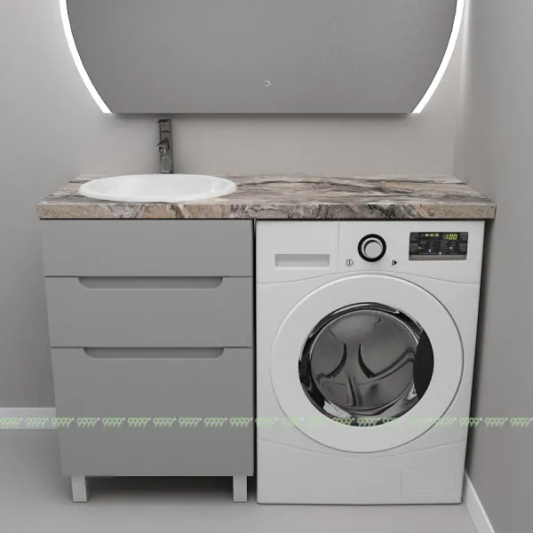 Монтаж умывальника со столешницей из литьевого мрамора над стиральной машиной.