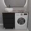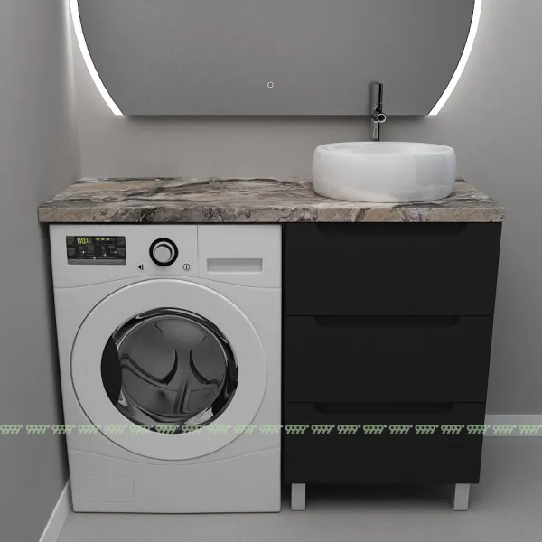 Монтаж умывальника со столешницей из литьевого мрамора над стиральной машиной.