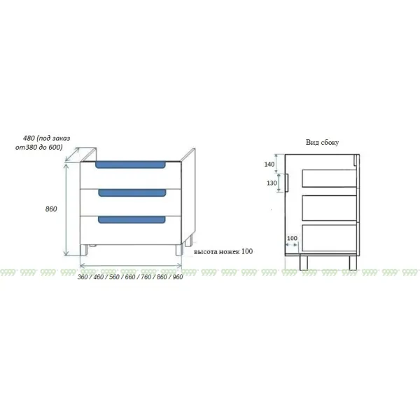функционал: напольная тумба, 3 выдвижных ящика с плавным ходом и закрыванием (доводчики нижнего монтажа - Boyard).
