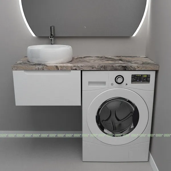 Монтаж умывальника со столешницей из литьевого мрамора над стиральной машиной.