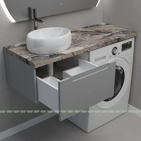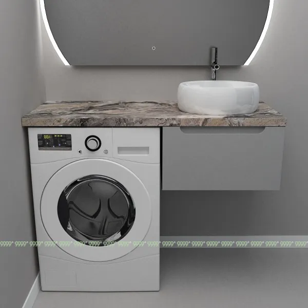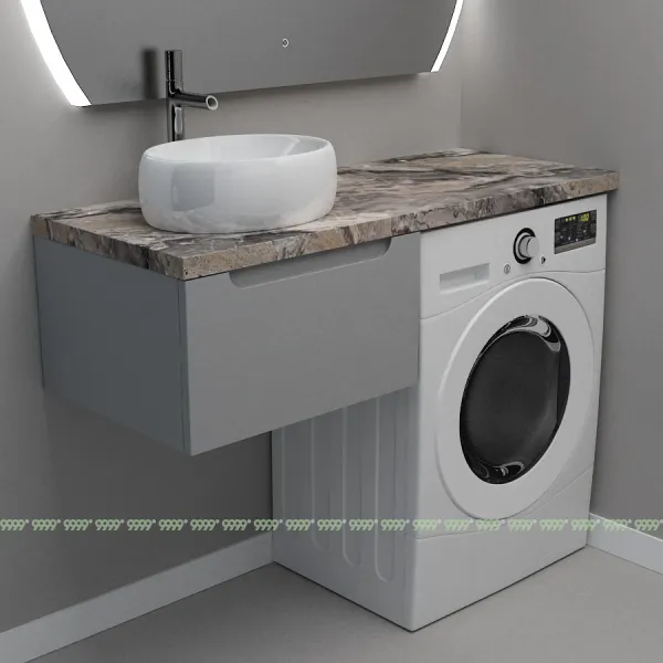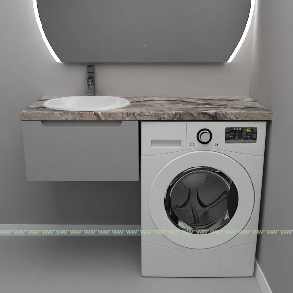Монтаж умывальника со столешницей из литьевого мрамора над стиральной машиной.