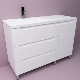 Тумба с умывальником Дана Венеция Люкс 130 напольная на 3 ящика (цвет белый/белый мрамор) чаша слева