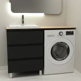 Тумба Дана Лидер 40 напольная с 3 ящиками (цвет черный) под столешницу 100 см над стиральной машиной