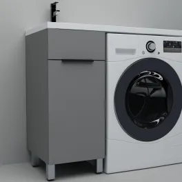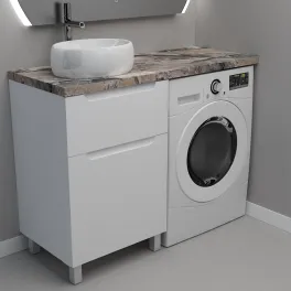 Тумба со столешницей Дана Оптима Топ 100 подвесная (цвет бетон чикаго/черный) над стиральной машиной