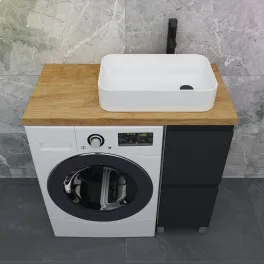 Тумба со столешницей Дана Лидер Компакт 100 подвесная на 1 ящик (цвет черный) над стиральной машиной