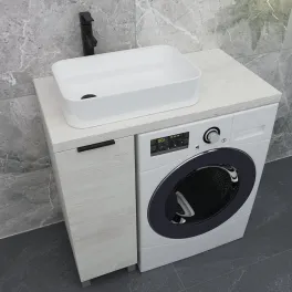 Тумба со столешницей Дана Лидер Компакт 100 напольная на 2 ящика (цвет белый) над стиральной машиной