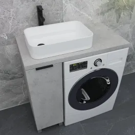 Тумба со столешницей Дана Лидер Компакт 100 подвесная на 1 ящик (цвет черный) над стиральной машиной