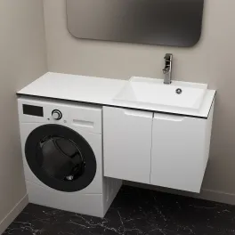 Тумба Дана Лидер 45 подвесная с 2 дверцами (цвет белый) под столешницу 105 см над стиральной машиной