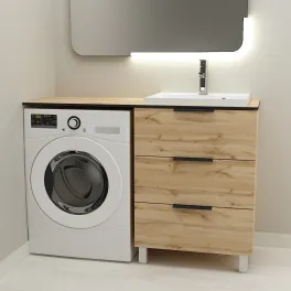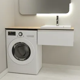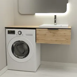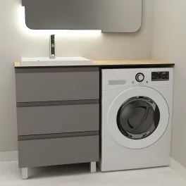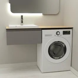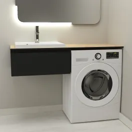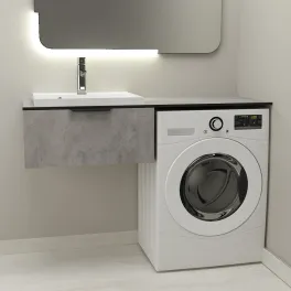 Тумба со столешницей Дана Оптима Топ 120 подвесная (цвет бетон чикаго/черный) над стиральной машиной