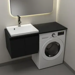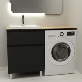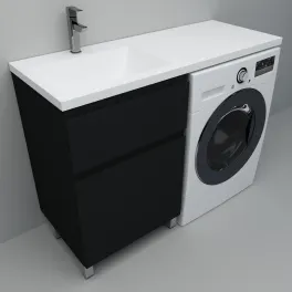 Тумба Дана Лидер 60 напольная с 2 ящиками (цвет черный) под столешницу 120 см над стиральной машиной