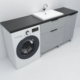 Тумба со столешницей Дана Виктория Топ 150 напольная на 3 ящика (цвет черный) над стиральной машиной
