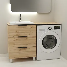 Тумба со столешницей Дана Каскад Компакт 100 напольная с дверцей L (цвет дуб) над стиральной машиной