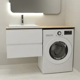 Тумба со столешницей Дана Лидер Компакт 100 подвесная на 2 ящика (цвет белый) над стиральной машиной