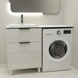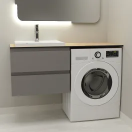 Тумба со столешницей Дана Каскад Компакт 100 напольная с дверцей L (цвет дуб) над стиральной машиной