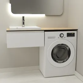 Тумба со столешницей Дана Лидер Компакт 100 напольная на 2 ящика (цвет белый) над стиральной машиной