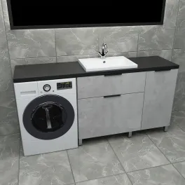 Тумба со столешницей Дана Оптима Топ 120 подвесная (цвет бетон чикаго/черный) над стиральной машиной