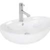 Современная раковина Синди-это сочетание сложной формы чаши с идеальной керамикой и гладкой поверхностью. Раковина имеет переливное отверстие и отверстие для крана.