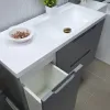 Мебель для ванной: тумбы, пеналы, шкафчики и т.д поставляются в СОБРАННОМ ВИДЕ (кроме накладных ручек и ножек, если таковые есть в модели, они прикручиваются самостоятельно), столешницы под врезной или накладной умывальник изготавливаются БЕЗ ВЫРЕЗОВ под умывальник и смеситель (все вырезы производятся самостоятельно после монтажа столешницы на опоры (тумбу, кронштейны, уголки и т.д.) или оплачиваются дополнительно, но только после согласования)