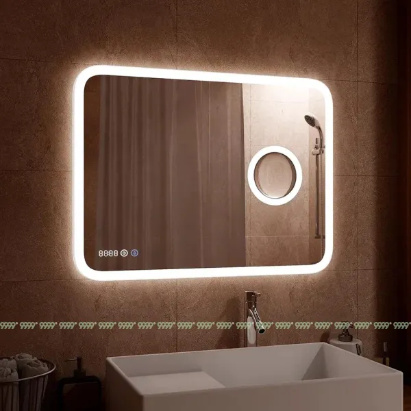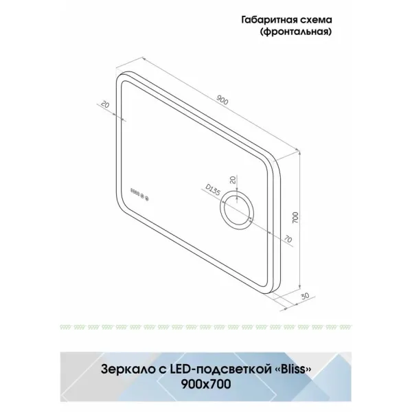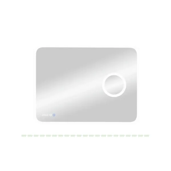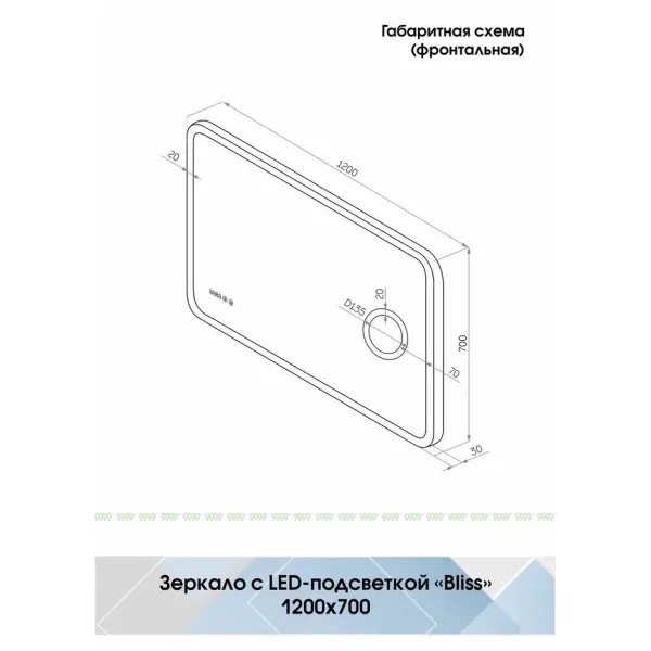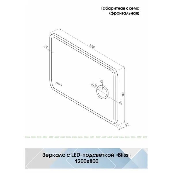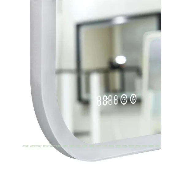 При изготовлении используется светодиодная лента с плотностью диодов 120 шт./м и мощностью 9,6Вт/м, что создает мягкое и равномерное свечение по периметру зеркала.
