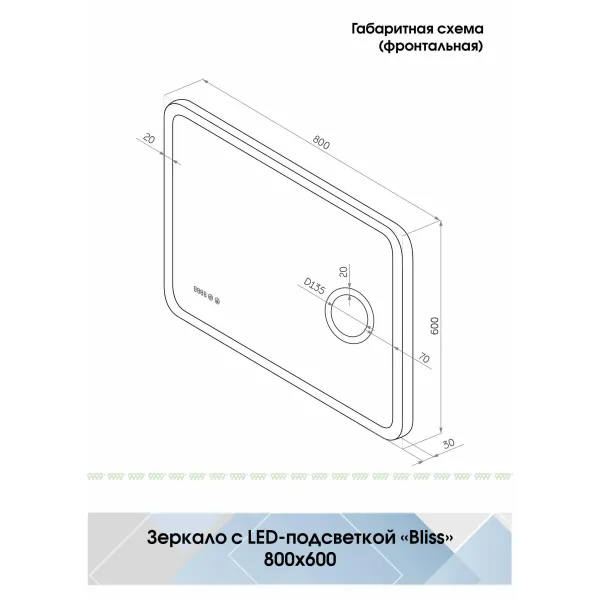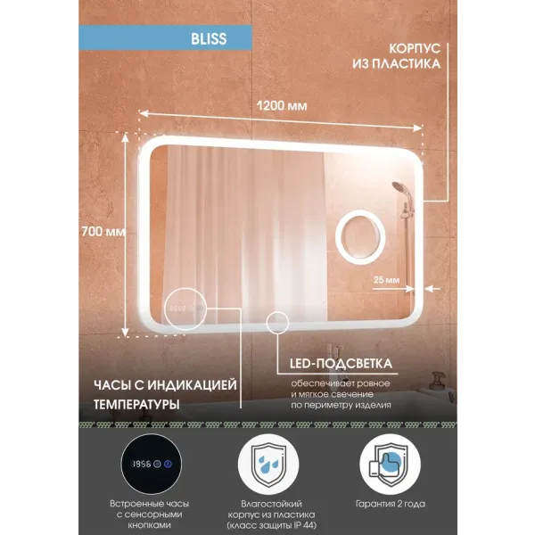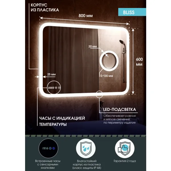 Зеркало "Bliss" изготовлено из зеркального полотна толщиной 4 мм от ведущего европейского производителя зеркал AGC.