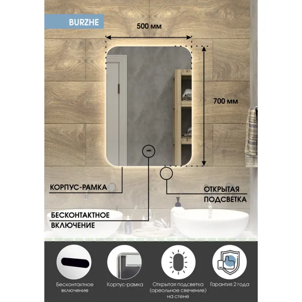 Зеркало с подсветкой Континент Burzhe LED 50х70 ореольная теплая подсветка и бесконтактный сенсор