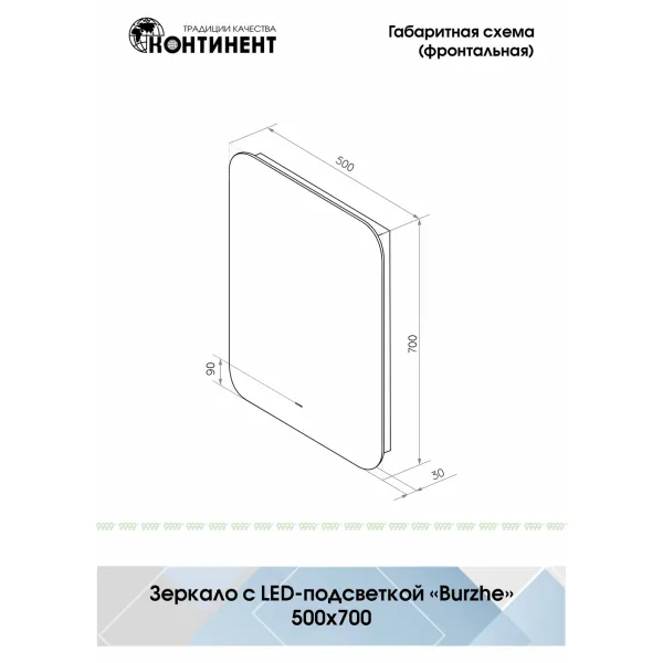 Зеркало с подсветкой Континент Burzhe LED 50х70, 60х70, 80х70, 100х70, 120х70 ореольная теплая подсветка и бесконтактный сенсор
