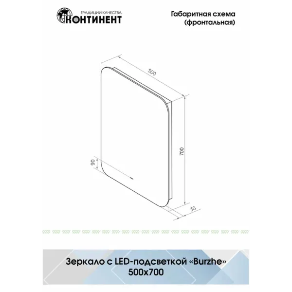 Зеркало с подсветкой Континент Burzhe LED 50х70, 60х70, 80х70, 100х70, 120х70 ореольная холодная подсветка и бесконтактный сенсор