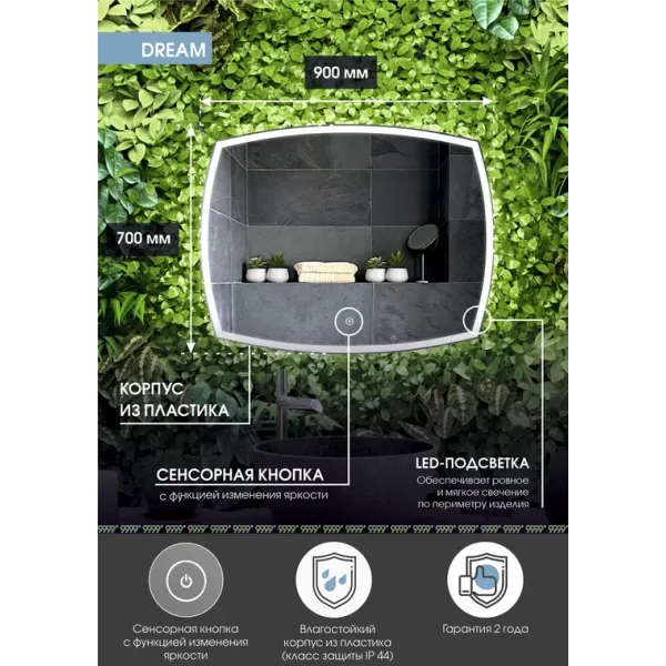 Зеркало с подсветкой Континент Dream LED 70х90, 90х70 ореольная теплая подсветка
