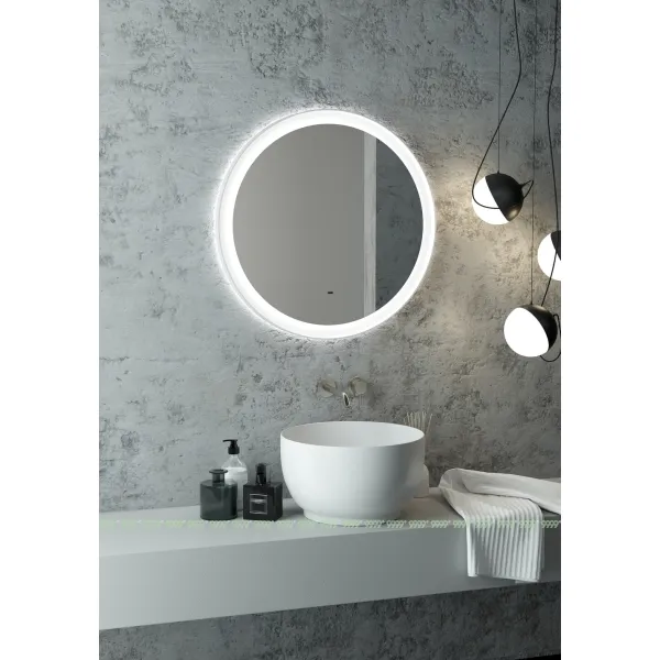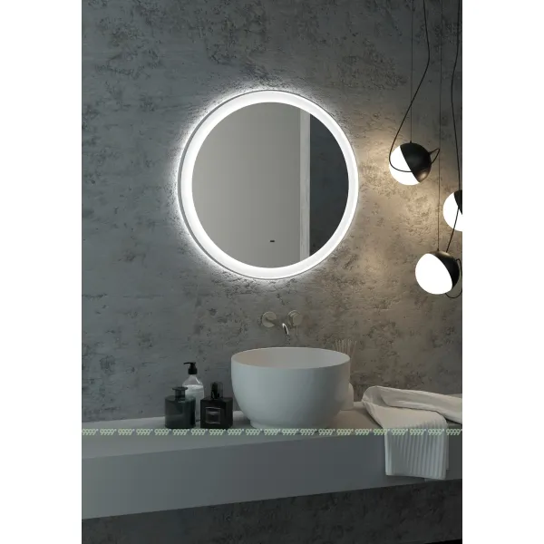 Зеркало с подсветкой Континент Planet White LED D60, D70, D80, D100 ореольная холодная подсветка и бесконтактный сенсор