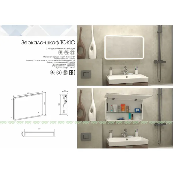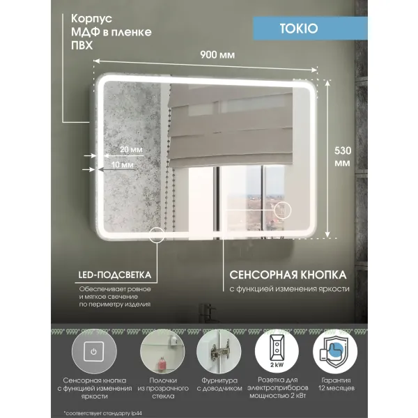 - Возможные размеры: 900*530*160;- Мягкое свечение LED-подсветки по всему периметру фасада;