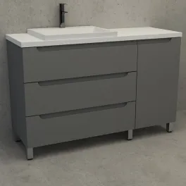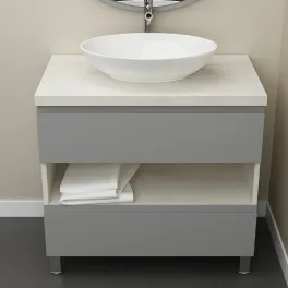 • Столешницы для тумб на заказ. Современное решение для ванной комнаты. В каталоге представлены различные варианты поверхностей, включая искусственный камень, постформинг и компакт-плиту.