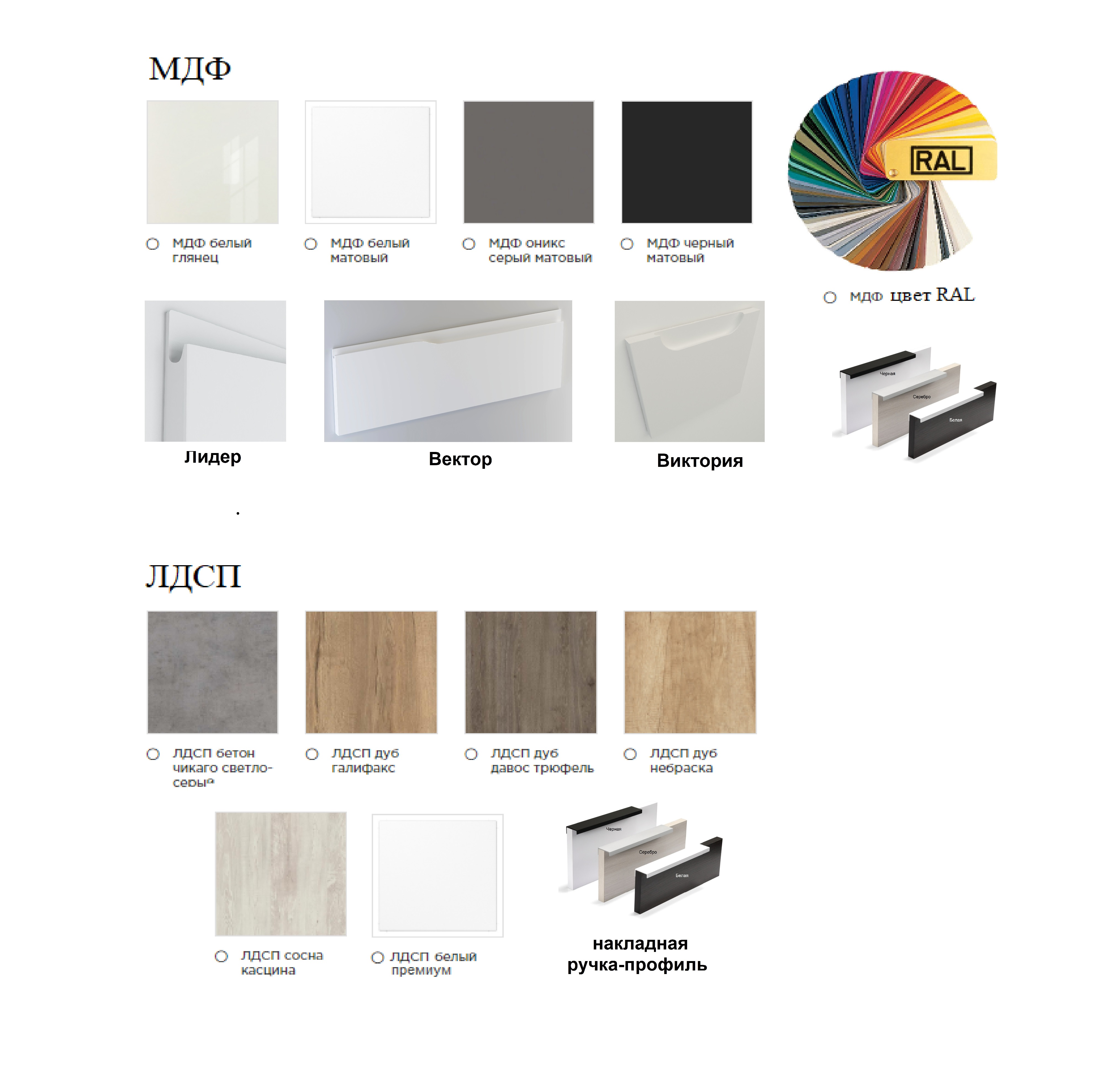 2. Определиться с материалом изготовления, цветом и ручкой фасадов