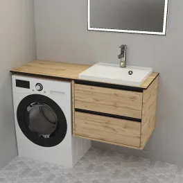 Тумба Дана Легенда 100 подвесная с 2 ящиками (цвет дуб) под столешницу 160 см над стиральной машиной